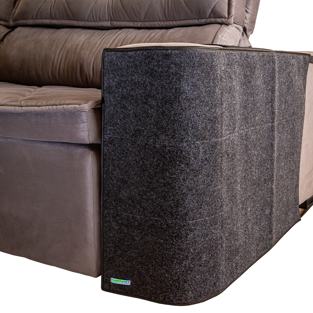 O protetor de sofás e poltronas oferece uma superfície de carpete resistente, reforçado com uma dupla camada, que irá atrair o gato para afiar suas unhas, deixando o restante do sofá à salvo e reservado apenas para ele se deitar e te fazer companhia.